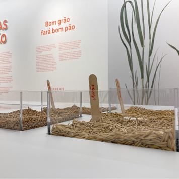 O projecto gráfico, desenvolvido em paralelo com o projecto expositivo da arquitecta Manuela Fernandes, assume uma dupla abordagem — documental e imersiva —, expondo peças originais, documentos, fotografias, cereais e audiovisuais.